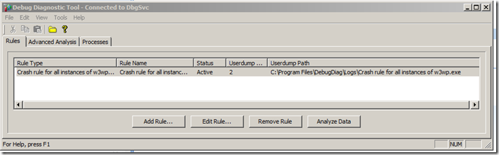Setting up Debug Diag rules and gathering data